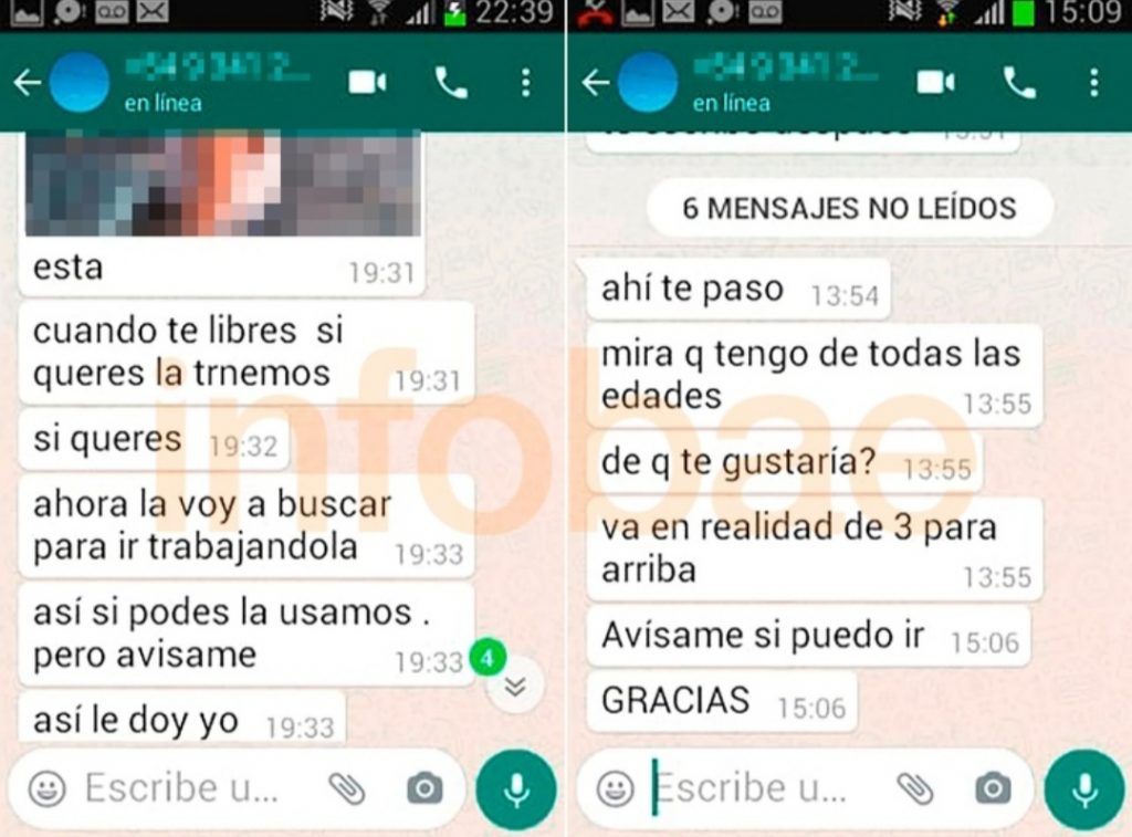 En sus comunicaciones, hasta envió fotos de niñas, le preguntó a la trabajadora si había abusado de su propio hijo. “A mí me excitan desde bebés de un año hasta la edad más chica posible”, afirmó. Incluso invitó a su interlocutora “a tomar un pase” de cocaína en su casa y ver videos de pornografía infantil. Le envió material prohibido: fotos de una niña y un niño de no más de seis años abusados por dos adultos, todo por WhatsApp.