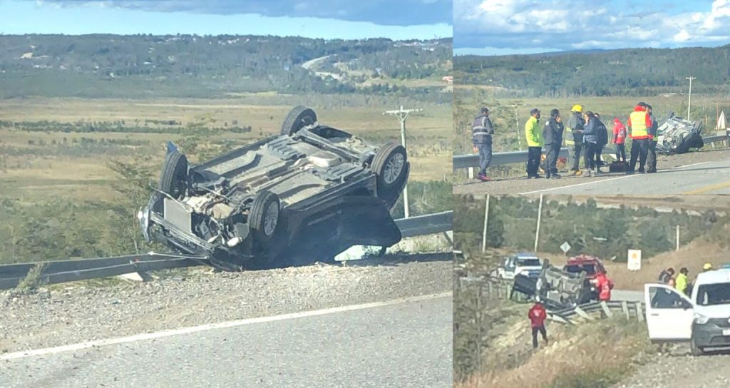 Personal policial de la Comisaría de Tolhuin recibió el jueves 6 de enero, alrededor de las 18, en la línea 101 de emergencias, un pedido de auxilio dando cuenta que dos rodados que circulaban por la Ruta Nacional Nro 3, a la altura del ingreso al camino que desciende hacia la hostería Kaikén, habían chocado, terminando uno de ellos con sus cuatro ruedas hacia arriba, retenido por un guard raid que evitó que se desbarrancara hacia un profundo desnivel del terreno paralelo a la banquina.