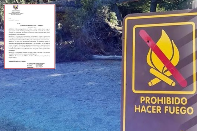 Desde el Gobierno de Tierra del Fuego, mediante Decreto se prhibe realizar fuego por 90 dias en Tierra del Fuego. A través de un decreto firmado por la ministra de Producción y Ambiente, Sonia Castiglione, el gobierno provincial resuelve prohibir cualquier clase de fuego en lugares agrestes de la provincia por el término de 90 días.