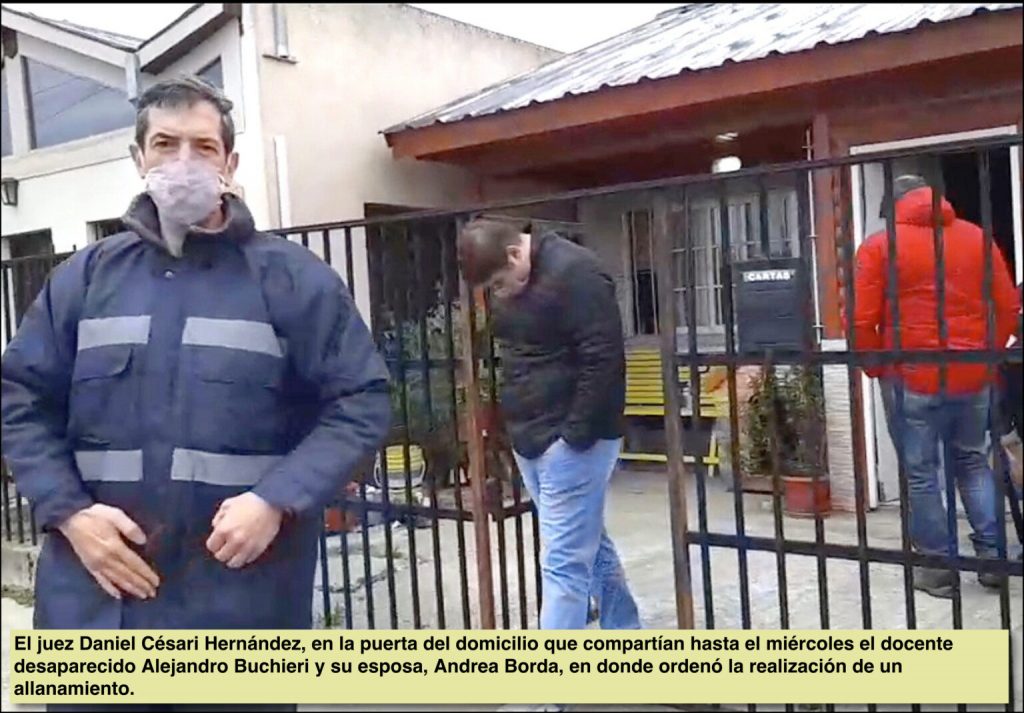 Daniel Césari Hernández, de turno durante la feria vacacional de la Justicia, se está encargando personalmente de supervisar las distintas medidas que dispuso que se realicen en torno a la extraña desaparición del docente Alejandro Buchieri, quien el 5 de enero concurrió con su esposa Andrea Borda y su mascota a la costa de Cabo Domingo, desde donde se lanzó al agua con un pequeño gomón y desapareció sin dejar rastros.