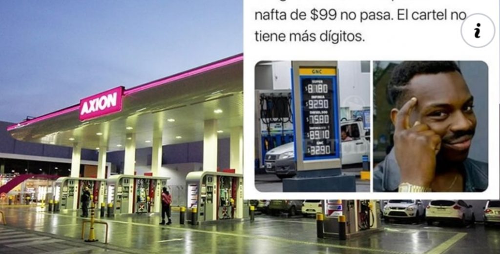 El meme tenía un trasfondo y plantea un problema concreto, qué harían las estaciones de servicio para adaptar los carteles digitales cuando los combustibles salgan $100.