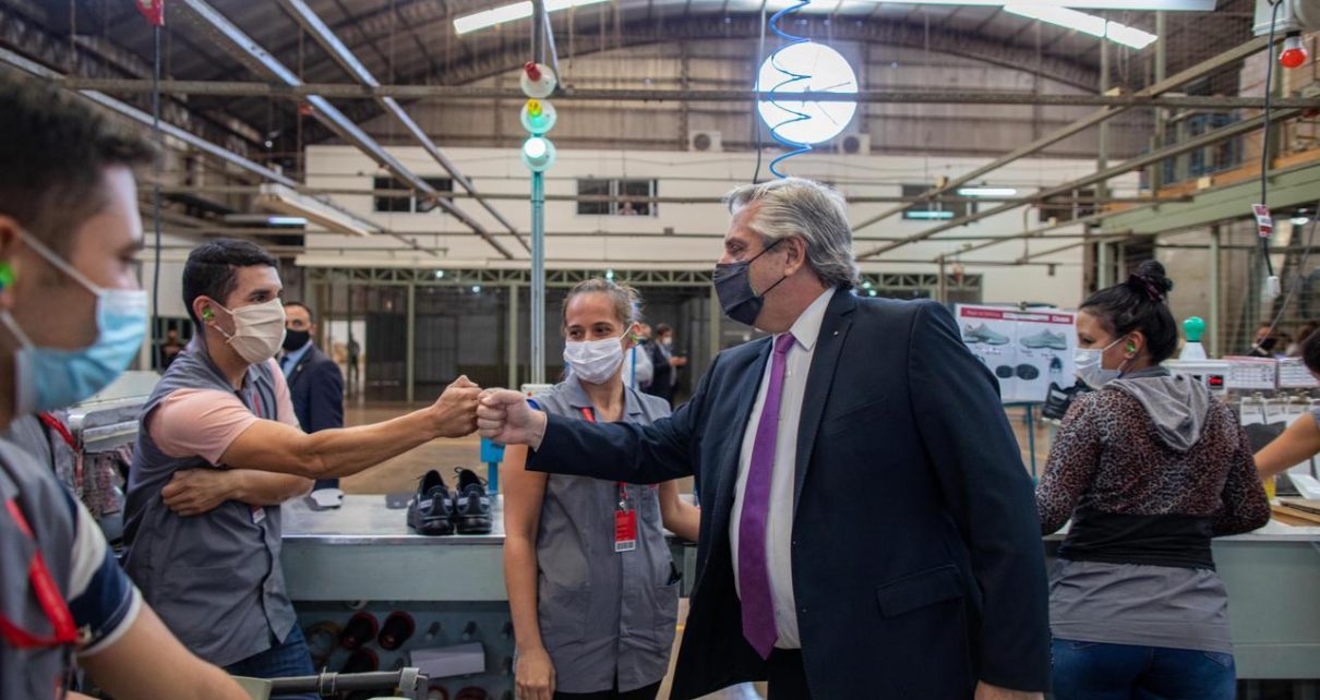 El presidente Alberto Fernández aseguró que el Gobierno nacional va a proteger “al trabajo, al que invierte, al que produce, y al que permite el desarrollo que una sociedad necesita”, al visitar este mediodía en Eldorado, Misiones, la planta de producción de calzado e indumentaria deportiva de la firma Dass.