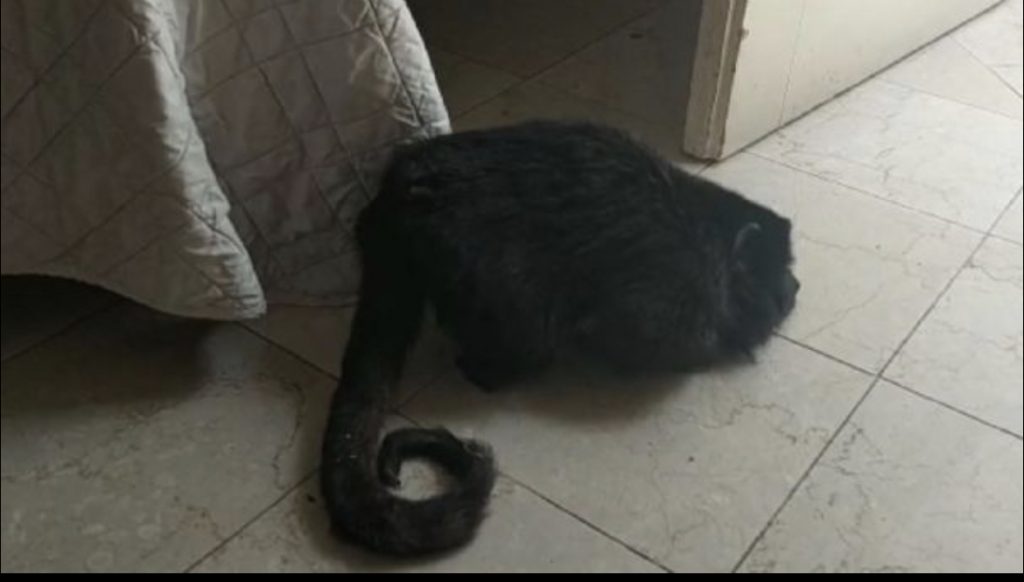 Pero lo más inesperado de este procedimiento se produjo al momento de efectuar la requisa de la vivienda, de amplias dimensiones: es que los agentes se encontraron con un mono en condiciones de abandono, tratándose de la especie carayá que habita en el norte del país.