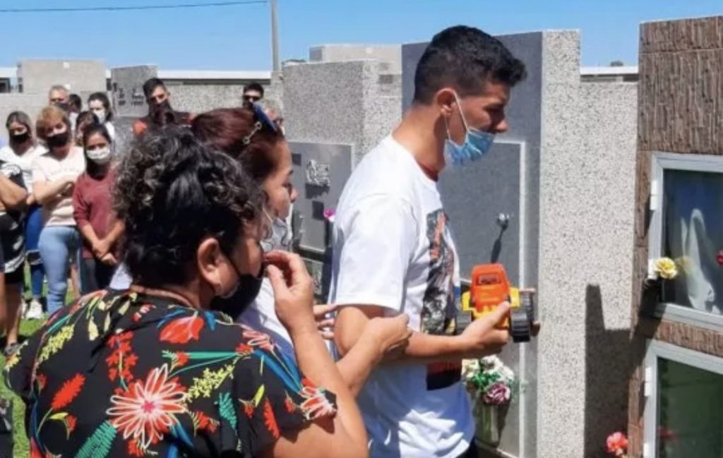 El féretro arribó al cementerio pasadas las 11, escoltado por su padre, quien colocó junto a él un camión rojo de juguete que pertenecía al niño.
