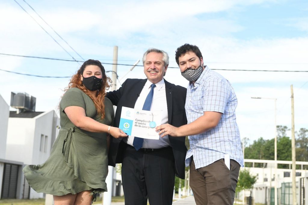 “Tener una casa en estos tiempos es un derecho humano y vamos a seguir trabajando para que el mayor número de argentinos y argentinas se saquen el temor de no tener dónde vivir”, añadió el jefe de Estado, que estuvo acompañado por el ministro de Desarrollo Territorial y Hábitat, Jorge Ferraresi, y el intendente de Ezeiza, Alejandro Granados.