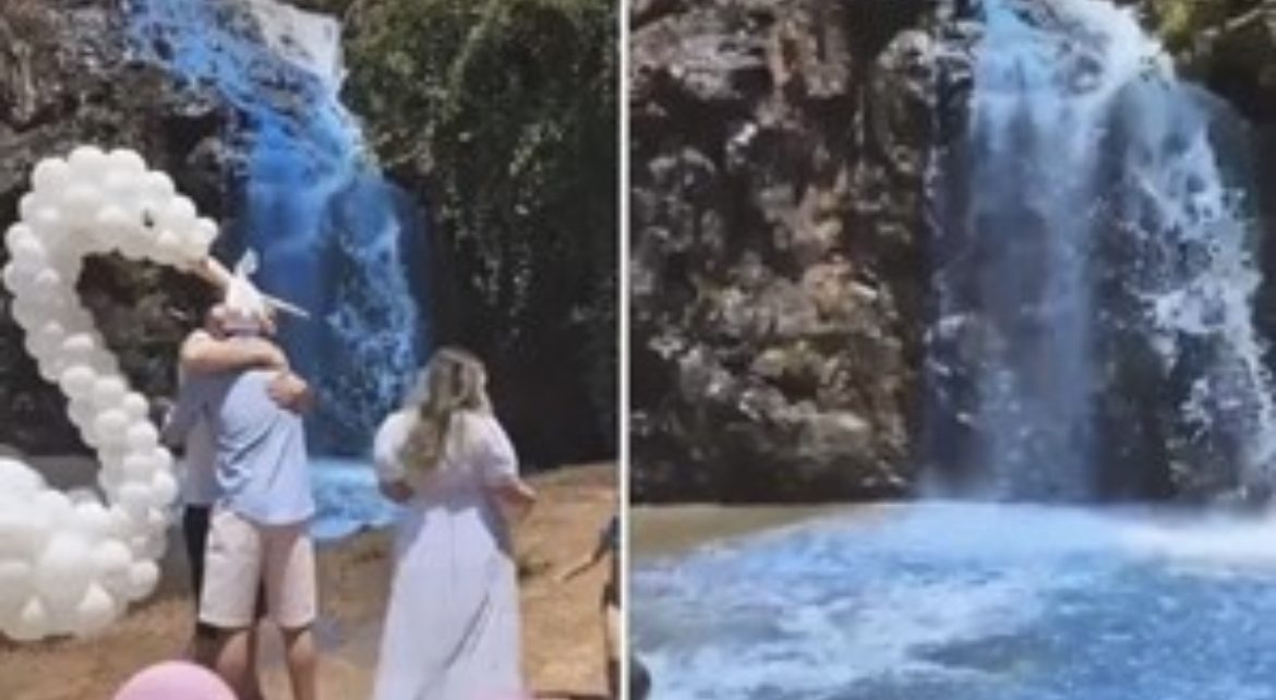 En el último tiempo las revelaciones para saber el sexo del bebé son «alocadas» y las ideas a veces traen consigo distintos problemas. En esta ocasión una pareja tiñó la cascada de agua potable de su localidad para dar a conocer la noticia.