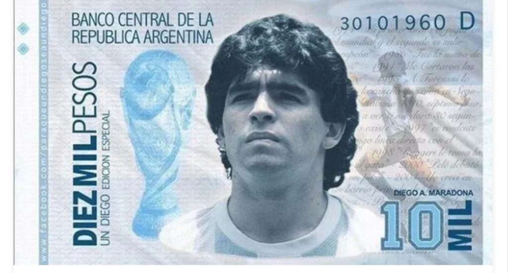 En la plataforma change.org, surgió un petitorio –como varios que se generan diariamente– que expresa: “Sumá tu firma para que el gobierno emita el billete de $10 mil de Maradona, los pesos serían buscados mundialmente”.