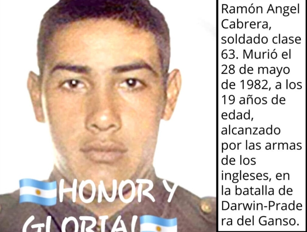 “A 39 años de la última gesta de la Patria en Malvinas, recordamos a Ramón, nacido el 23 de marzo de 1963 en San Agustín, Córdoba. Pertenecía al Regimiento de Infantería Nro. 25 – Sarmiento Provincia de Chubut y fue trasladado desde Puerto Belgrano a Puerto Argentino en el el ARA Almirante Irizar. De acuerdo a las cartas que nos envió, en sus primeros días en Malvinas estaba entusiasmado. El de puño y letra escribió: `El domingo desembarcamos, nos llevaron hasta un pueblo que está allí en las Islas Malvinas que se llama Ganso Verde. Los atacamos y entramos sin ningún problema. Les hicimos juntar todos los autos y las motos y les sacamos todas las armas que tenían. Son ingleses todos´.