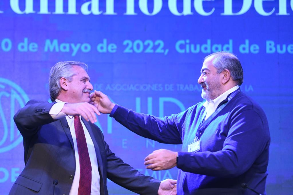 Ante dirigentes, delegados, delegadas y congresales representantes de todas las filiales del país del sector de la sanidad, el jefe de Estado afirmó que durante la pandemia de Covid-19 “no hubo ningún argentino que se quedara sin la atención médica que necesitaba”, y explicó que eso fue posible “porque estaban ustedes, los trabajadores de la salud, hombres y mujeres, enfermeros, enfermeras, medicos, medicas, todos poniendo su esfuerzo, todos siendo la primera línea para parar al virus”.