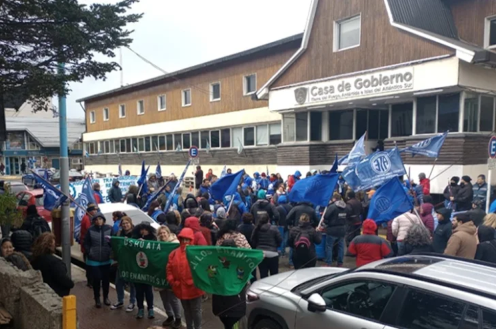 El gremio de ATE realizo una movilización y posterior concentración frente a Casa de Gobierno en Ushuaia por recomposición salarial.