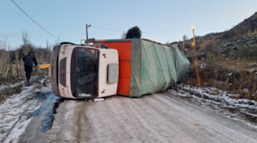 Un camión volcó en Ushuaia por el hielo en la calzada