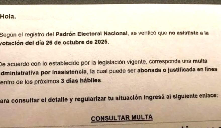 ALERTA POR CORREO FALSO SOBRE MULTAS ELECTORALES: INTENTAN ROBAR DATOS PERSONALES.