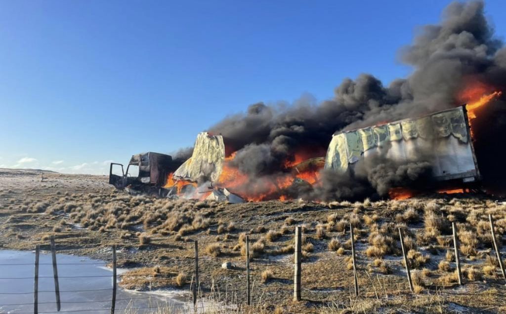 El camionero argentino pudo escapar ileso del camión en llamas, que se consumió totalmente.