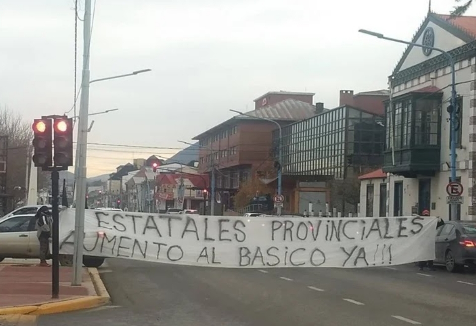 Estatales se manifestaron y reclamaron en plena cuarentena este domingo en Ushuaia, mediante nota indicaron, «el cumplimiento inmediato de mejora salarial», con retroactivo al mes de marzo de 2020. La protesta se realizó a la vuelta de la Casa de Gobierno, y ocasionó alguna que otra complicación al tránsito, al cruzar pancartas en medio de la calle Maipu entre Roca y Lasserre con el fin de viralizar el reclamo.