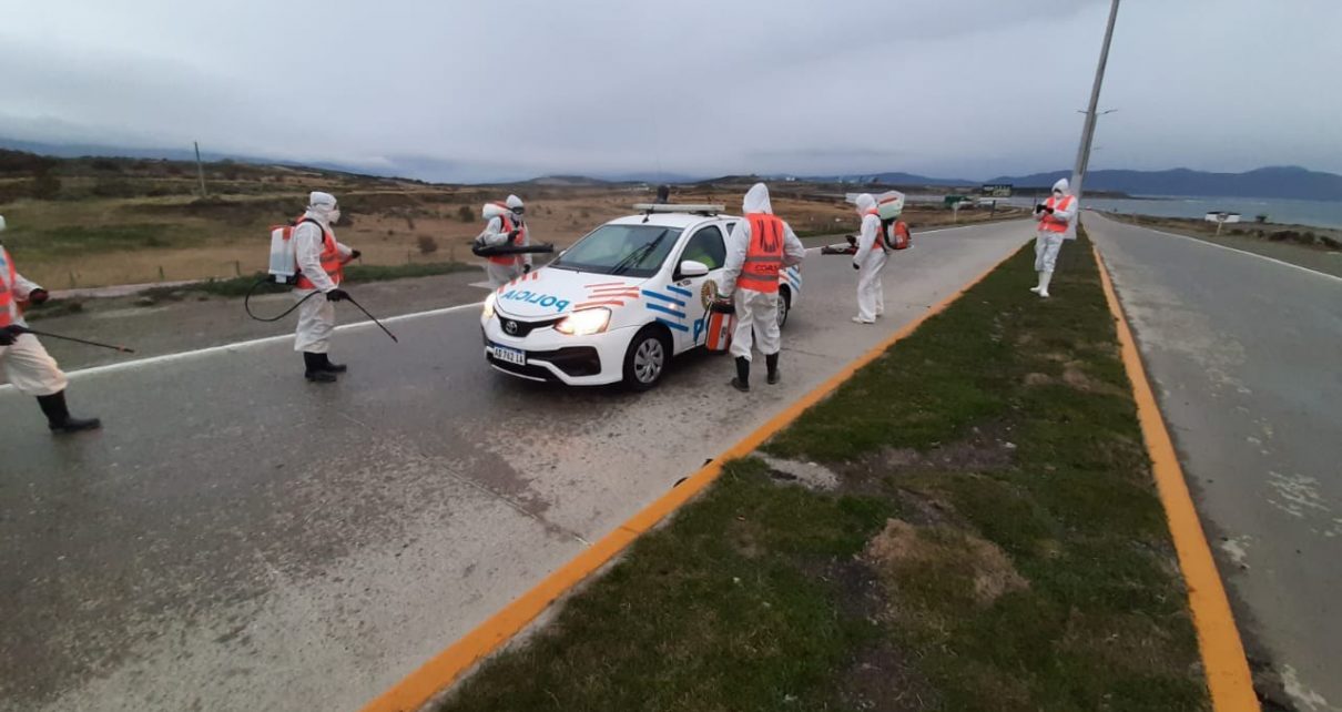 La Municipalidad de Ushuaia realizó tareas de desinfección sobre los vehículos que se retiraron de la zona del aeropuerto internacional Malvinas Argentinas, luego de recibir al vuelo que arribó con personas que se encontraban varadas en Buenos Aires.