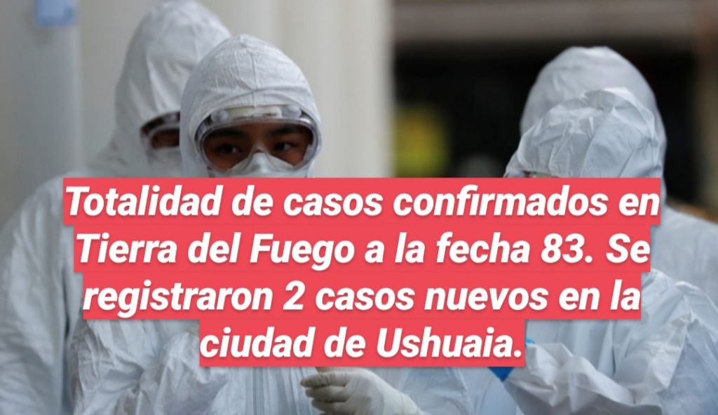 Totalidad de casos confirmados en Tierra del Fuego a la fecha 83. Se registraron 2 casos nuevos en la ciudad de Ushuaia.