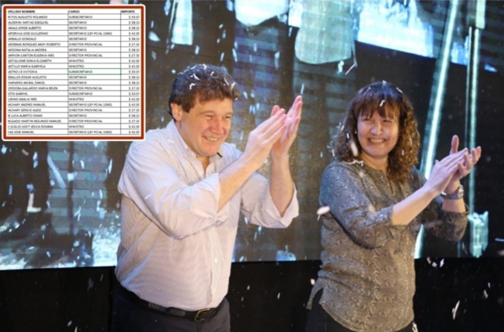 En el listado se destacan parejas de funcionarios que perciben el extra del 20% del haber, lo que en numerosos casos la cifra acumula $80.000 mensuales. También, personal de gabinete que reside en Río Grande y no realiza tareas en Ushuaia.