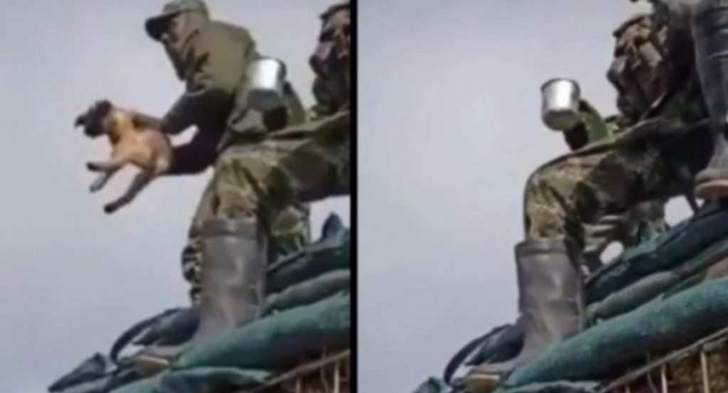 Un soldado lanzó la mascota por el aire ante la aprobación de sus compañeros. Mirá el indignante video.