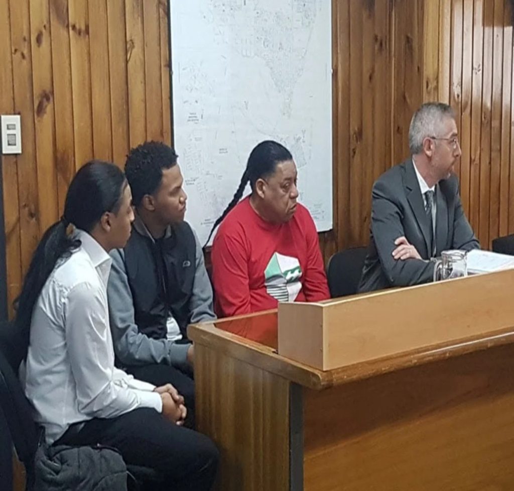 Los dominicanos que están acusados en este juicio quieren terminar todo pagando 380 mil pesos Ronny Miguel Rodríguez Parra de 21 años, su padre Ronny Leonardo Rodríguez Rosario de 63 años y a Ronin Joel Bonilla Minaya de 21; estan siendo juzgados por el delito de homicidio en grado de tentativa, por un hecho ocurrido en noviembre del 2016 en que resultó baleado Luis Haro de 34 años, quien se presentó como querellante junto al abogado Daniel Mandolini.