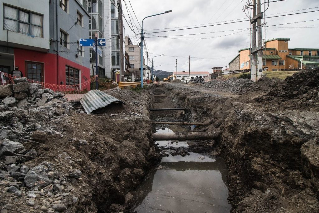 La obra de reconstrucción de la infraestructura cloacal de la calle Yaganes de la ciudad de Ushuaia alcanzó la etapa de colocación de los nuevos ductos. La Municipalidad de Ushuaia proyectó la obra para esta temporada y la empresa que realiza el trabajo ejecuta la tarea con un corte en la arteria para la realización de las maniobras necesarias.