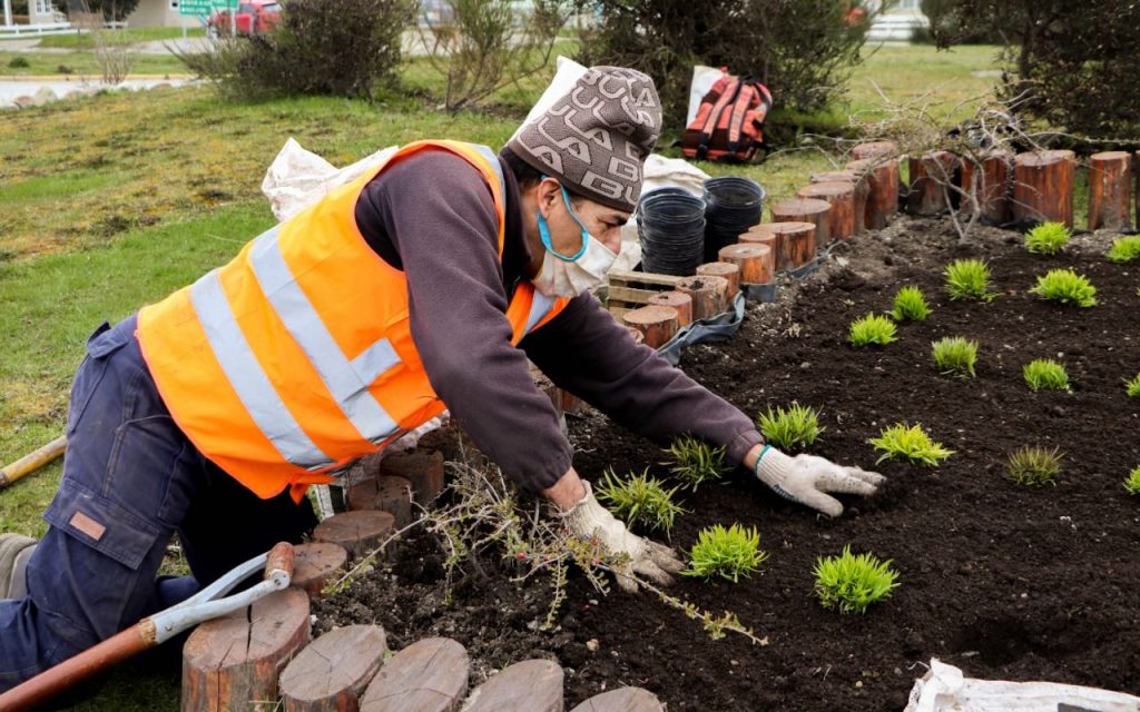 La Municipalidad de Ushuaia lleva adelante trabajos de embellecimiento en la ciudad con tareas de reparación y pintura de veredas por parte de cuadrillas de Servicios Públicos y la colocación de plantines y arbustos que realizan trabajadores y trabajadoras de Parques y Jardines.