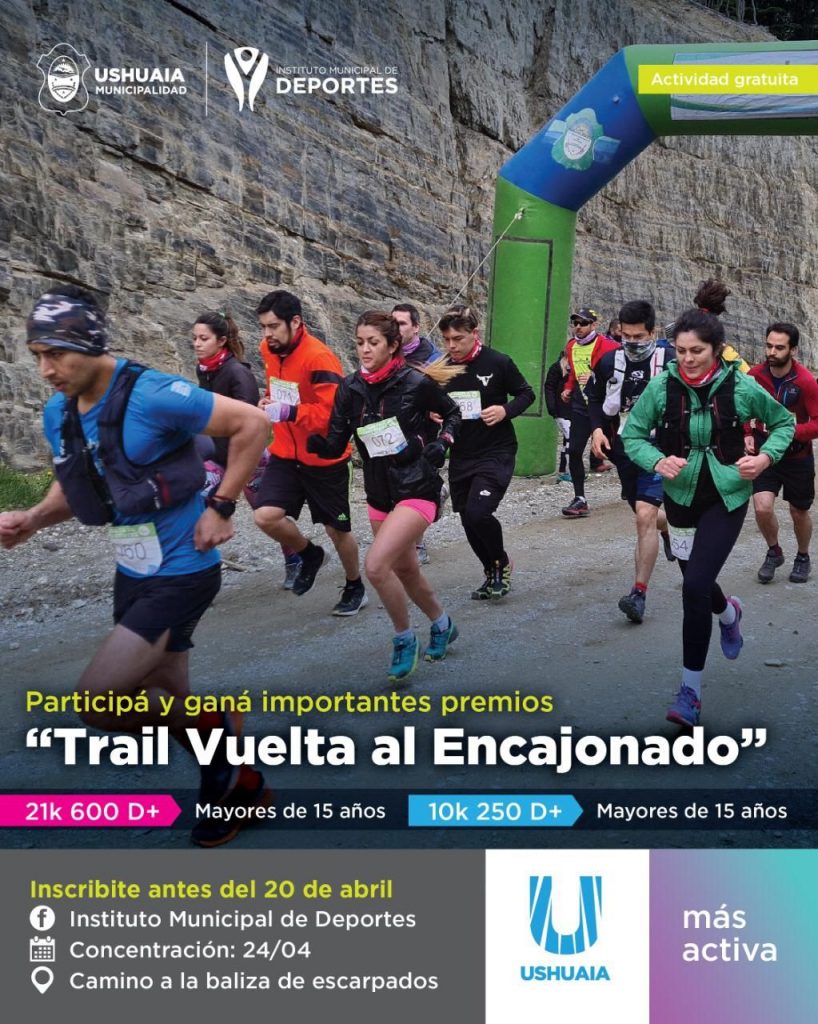 Luego de la gran convocatoria y aceptación que tuvo la “Vuelta al Cerro Cortez”, y al gran crecimiento del Trail Running en Ushuaia, el Instituto Municipal de Deporte acerca esta nueva propuesta, para los amantes del deporte al aire libre y la montaña, el trail “Vuelta al Encajonado”.