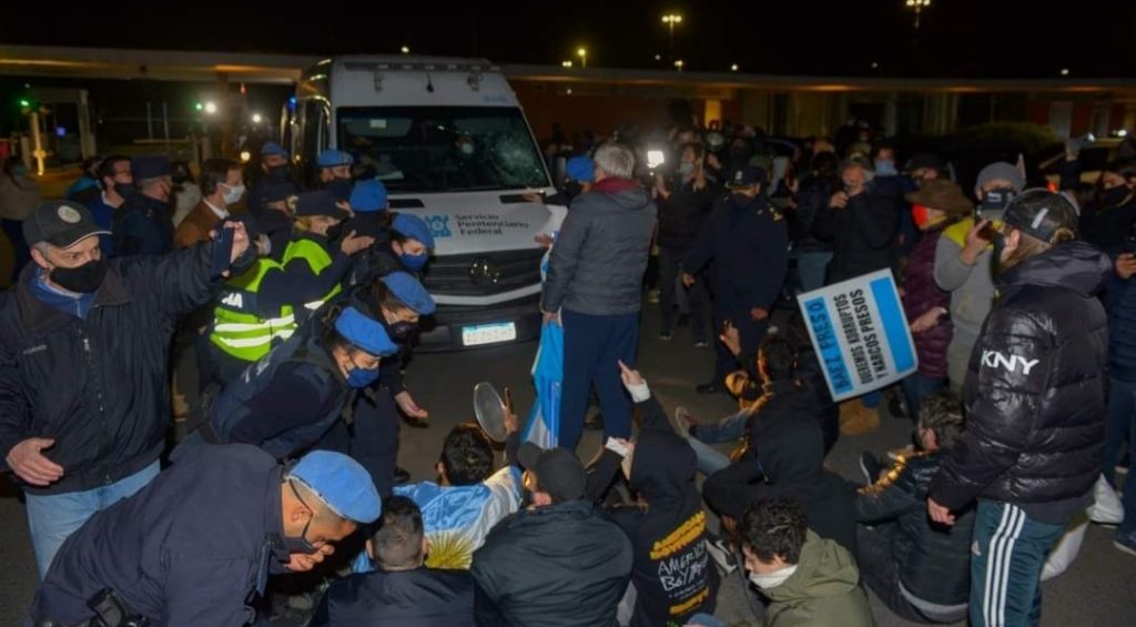 Vecinos de Lázaro Báez intentando impedir su ingreso al country. (Foto: Clarín)