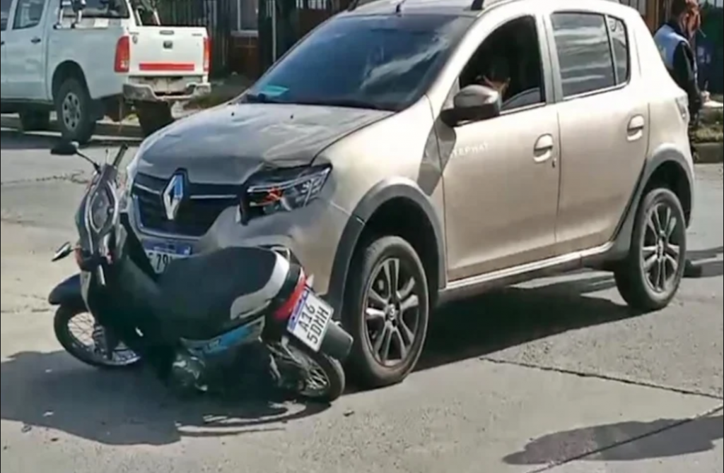 Un choque en la esquina de Colón y Fagnano dejo como saldo una motociclista lesionada. En el hecho estuvieron involucrados un Renault modelo Stepway y una motocicleta, que tras el impacto quedó debajo del rodado.