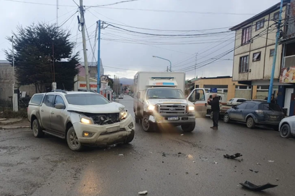 En calle Primer Argentino y Transporte Villarino se produjo un violento siniestro vehicular que involucró a una ambulancia del Hospital Regional Ushuaia y a una camioneta particular.