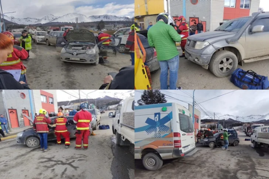 Un choque múltiple con cuatro rodados involucrados se registro en la intersección de las calles Marcos Zar y Luis Vernet de la ciudad de Ushuaia, con dos personas trasladadas al Hospital Regional.