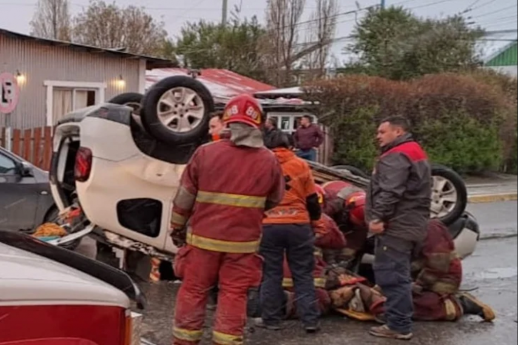 Un vehículo choco contra un rodado estacionado y volcó este domingo en calle Kuanip al 900 frente al destacamento de Bomberos en Ushuaia.