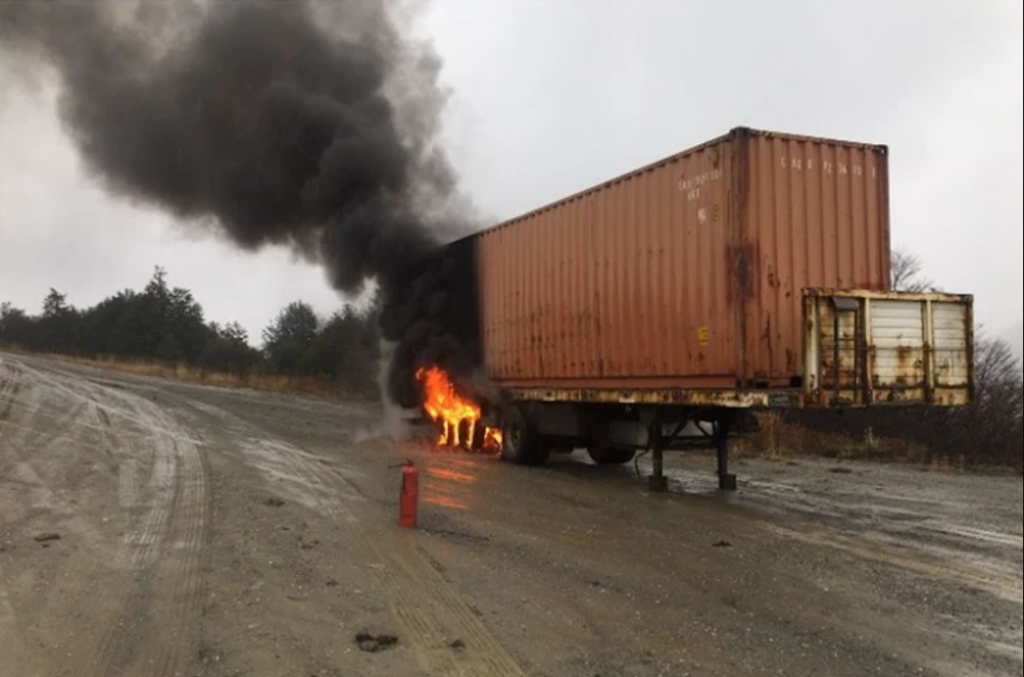 Un semiremolque se incendió la parte trasera cuando transportaba un camión, el cual circulaba por la Ruta Nacional Nº 3. Ocurrió en la banquina ubicada la altura de acceso de la hostería Petrel, en la zona del Garibaldi.