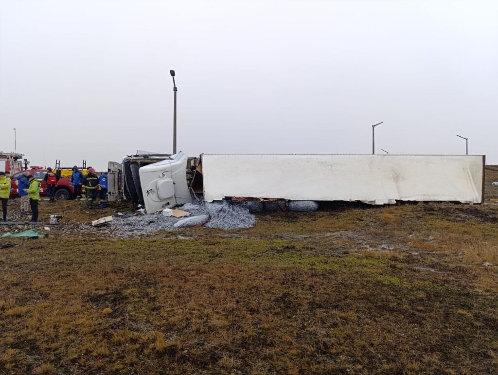 RÍO GRANDE. – Ayer aproximadamente a las 13:30, un camión de transporte volcó en la rotonda de Circunvalación y la ruta 3. El conductor fue trasladado de manera preventiva al hospital.