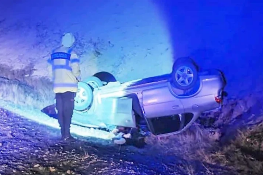 Cisneros, explicó a la policía que mientras se dirigía hacia Rio Grande, desde Tolhuin perdió el control de su rodado y se produjo el vuelco.
