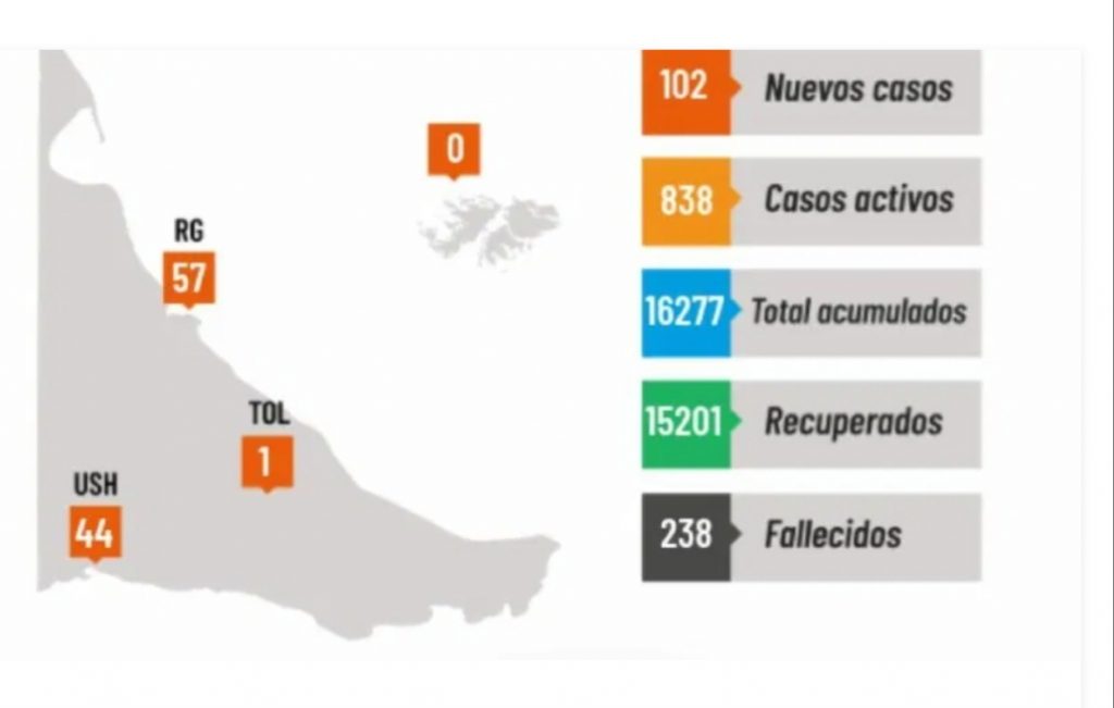 Ushuaia: 207 casos tienen nexo epidemiológico confirmado, 4480 casos con transmisión comunitaria.