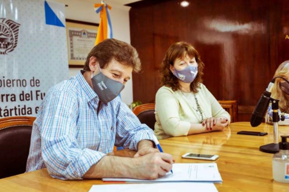 Junto al gobernador y la vicegobernadora estuvo el ministro Jefe de Gabinete, Agustín Tita; la ministra de Educación, Cultura, Ciencia y Tecnología, Analía Cubino; la ministra de Gobierno Justicia y Derechos Humanos, Adriana Chapperón; la ministra de Obras y Servicios Públicos, Gabriela Castillo; la ministra de Salud, Judit Di Giglio; la ministro de Producción y Ambiente, Sonia Castiglione; el ministro de Trabajo y Empleo, Marcelo Romero; el secretario General de Legal y Técnica, José Capdevila; el secretario de Educación, Pablo López Silva; el director Ejecutivo de la AREF, Oscar Bahamonde; la secretaria General de ATSA, Claudia Etchepare e integrantes del gremio; el secretario General de ATE Seccional Río Grande, Felipe Concha y representantes del sindicato