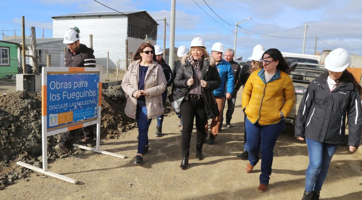La gobernadora Rosana Bertone, junto al ministro de Obras y Servicios Públicos, Luis Vázquez, recorrieron este martes, los barrios El Argentino, Los Fueguinos y Unidos, donde se están llevando a cabo obras de red de tendido de gas.