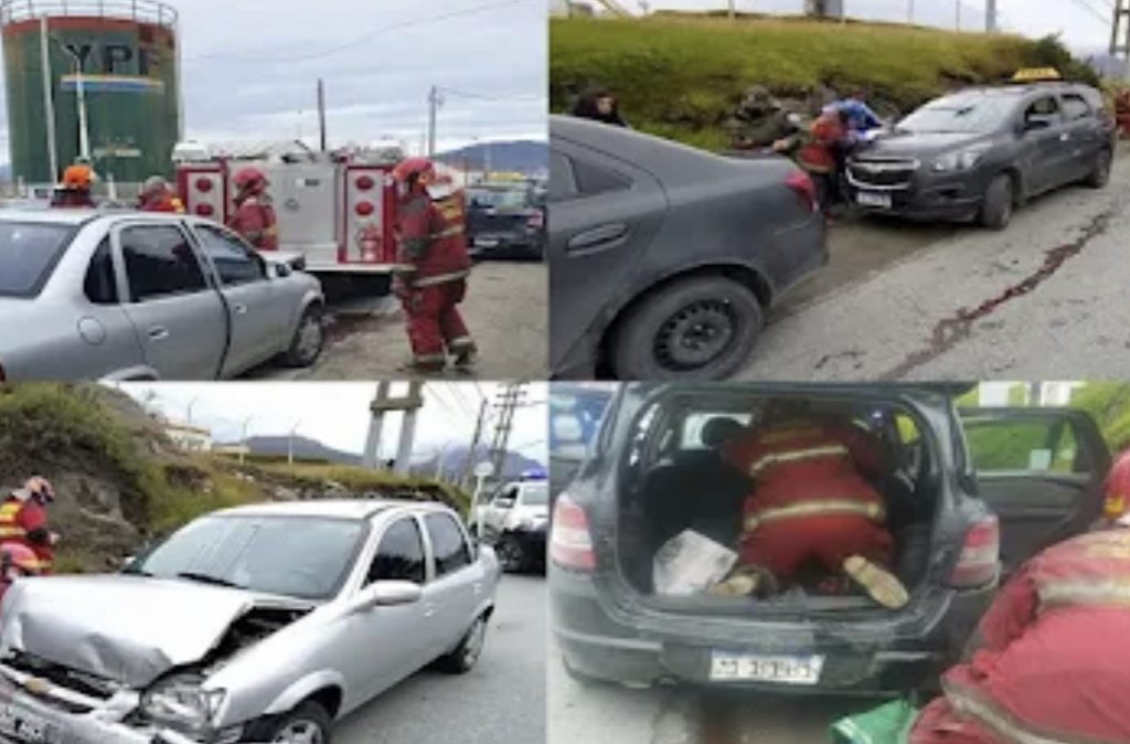 Se dio aviso a los servicios de emergencia y personal de Bomberos Ushuaia participo del rescate de la pasajera del taxi que luego fue trasladada al Hospital Regional.