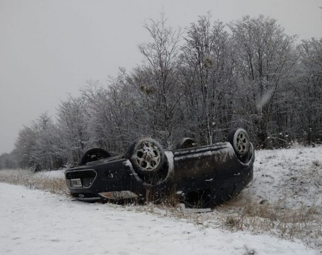 En el kilómetro 2952, donde la calzada se encontraba completamente cubierta de hielo y escarcha, ocurrieron también varios siniestros: uno de ellos fue protagonizado por un Volskwagen Suran donde viajaba una familia, que resultó ilesa.