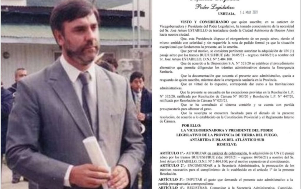 Hace pocos días salió a la luz pública el pago de un pasaje aéreo por parte de la Legislatura Provincial, cuya presidencia es ejercida por la mopofista Mónica Urquiza, beneficiando al ex gobernador Jose Arturo Estabillo. Si bien es entendible que en un sistema democrático existe la división de poderes, Ejecutivo,Legislativo y Judicial este hecho no deja de ser repugnante para una castigada y sufrida ciudadanía, ya que los dineros aportados con esfuerzo a la hora de pagar impuestos, fueron usados para pagarle un pasaje nada menos que a un “ personaje nefasto” de la política fueguina, por su desempeño como gobernador del Movimiento Popular Fueguino entre 1992 al 2000. Y además porque este sujeto cuenta con una holgada solvencia medida en un patrimonio millonario como para que encima la gente tenga que “bancarle” un boleto de avión para que viaje a su ciudad natal – Ushuaia – desde Buenos Aires, en donde está radicado desde hace muchos años.