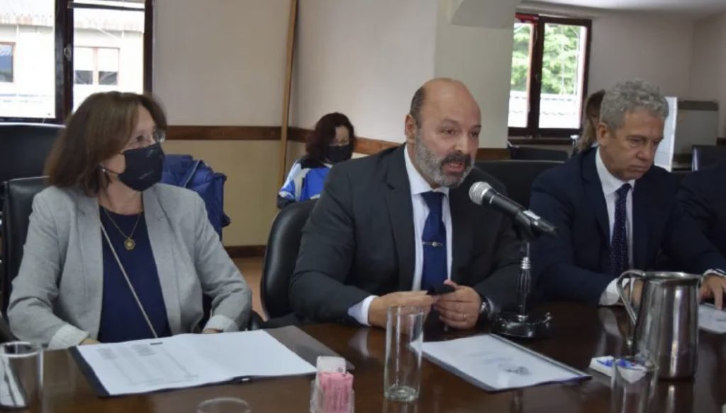 Los jueces del Superior Tribunal de Justicia de la provincia de Tierra del Fuego, Antártida e Islas del Atlántico Sur, Dr. Javier Darío Muchnik, Dra. María del Carmen Battaini y el Dr. Ernesto Löffler encabezaron este martes 23 de noviembre, la presentación del presupuesto de recursos y gastos del Poder Judicial para el ejercicio 2022.