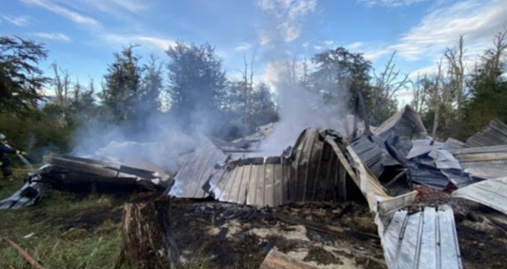 Una vez personal policial en el lugar, se constató el predio delimitado por cerco de alambre, con la presencia de Bomberos Voluntarios de Tolhuin, realizando tareas de enfriamiento sobre restos de la estructura de una vivienda.