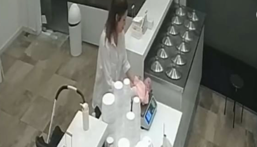 La empleada del local se fue a buscar los gustos seleccionado, quedando lejos de la madre y de espaldas, sin poder ver lo que ocurría. Ahí fue cuando la mujer colocó al bebé sobre la balanza de la heladería. En el corto video se puede ver también que la heladera se percata de la situación.
