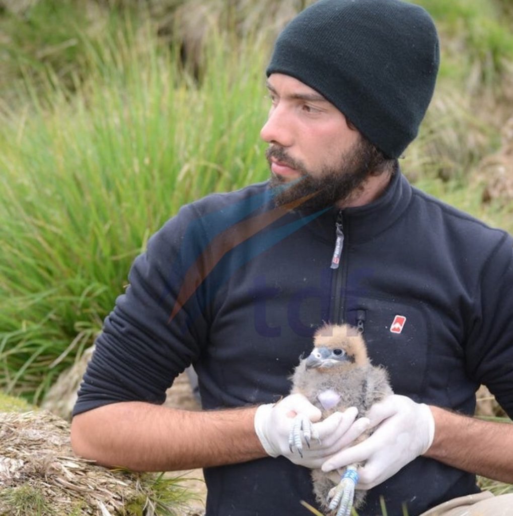 Tras su preparación académica en Buenos Aires volvió para realizar su tesis junto al equipo de la bióloga Andrea Raya Rey para monitorear al Carancho Austral en su hábitat de la Isla de los Estados.