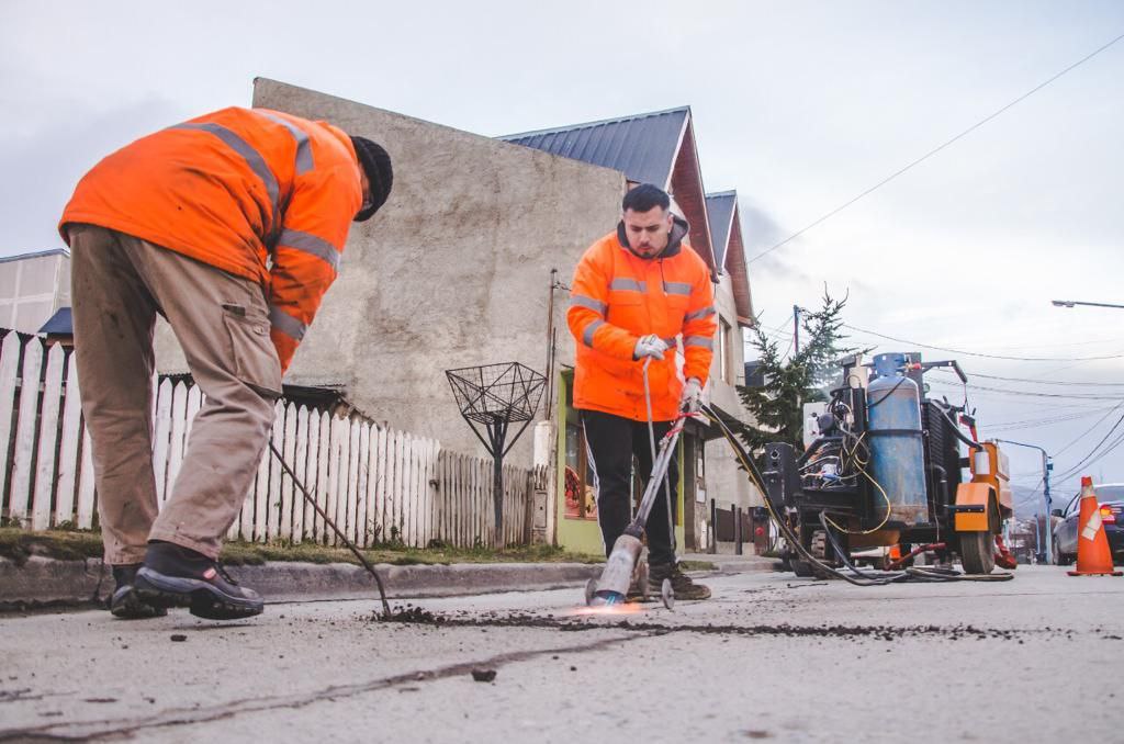 La Municipalidad de Ushuaia a través de la Secretaría de Planificación e Inversión Pública continúa con los trabajos de sellado en las grietas de la calle Luis Vernet, con maquinaria y personal del municipio.
