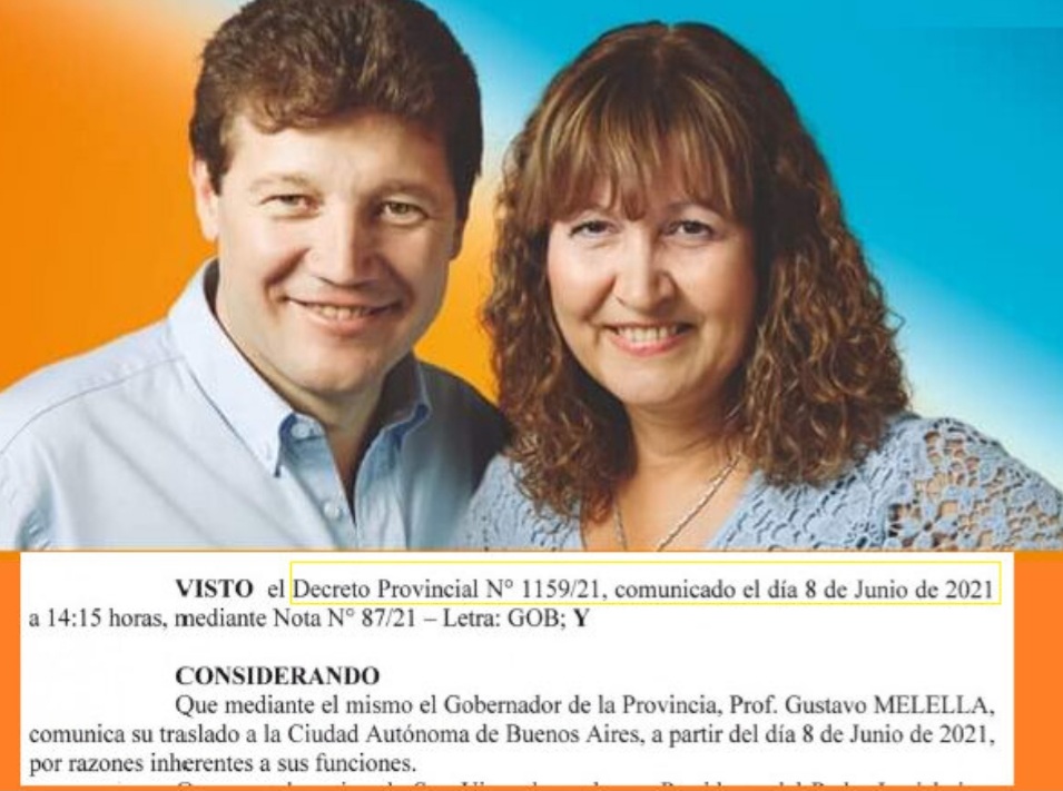De acuerdo a la Resolución de Presidencia de la Legislatura provincial N° 262/21, el Gobernador comunicó su «traslado a la Ciudad Autónoma de Buenos Aires» el día 8 de junio de 2021 a las 14:15 horas. El Decreto que informa el traslado del Gobernador es el N° 1159/21.