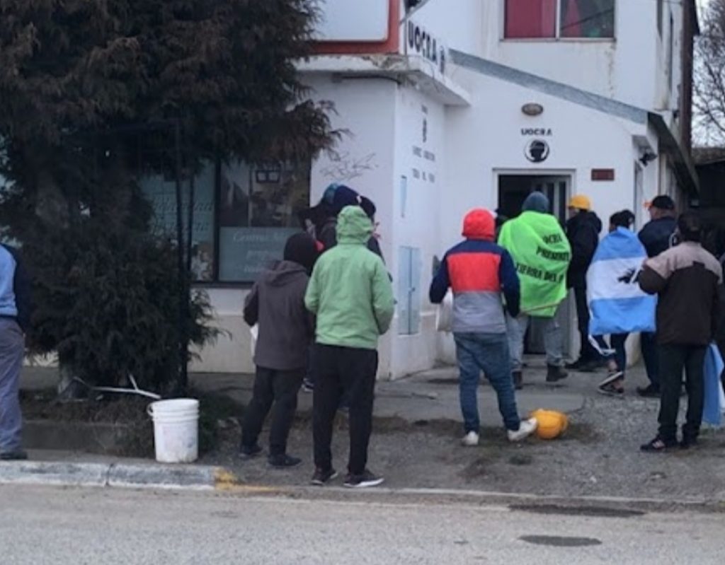 Trabajadores de la UOCRA llegaron hasta las puertas del sindicato ubicado en la calle Don Bosco de la ciudad de Río Grande para protestar contra el representante de este sindicato, Julio Ramírez.
