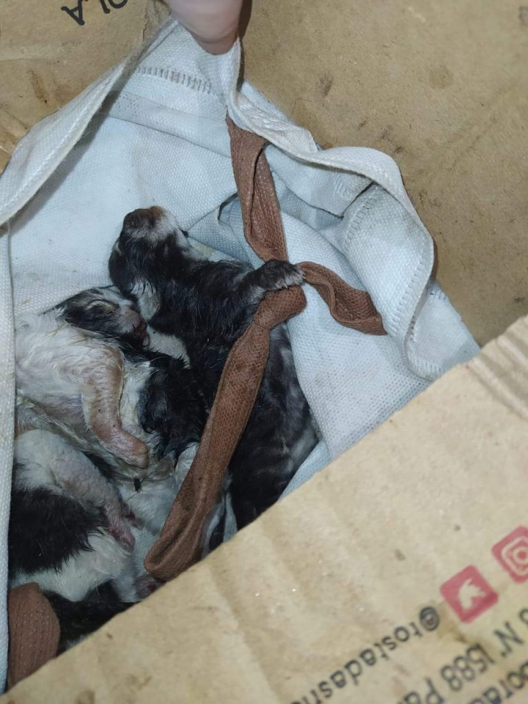 Los pequeños cachorros ya estaban sin vida debido a las inclemencias del tiempo, en un hecho que fue registrado y genera indignación en las redes sociales.