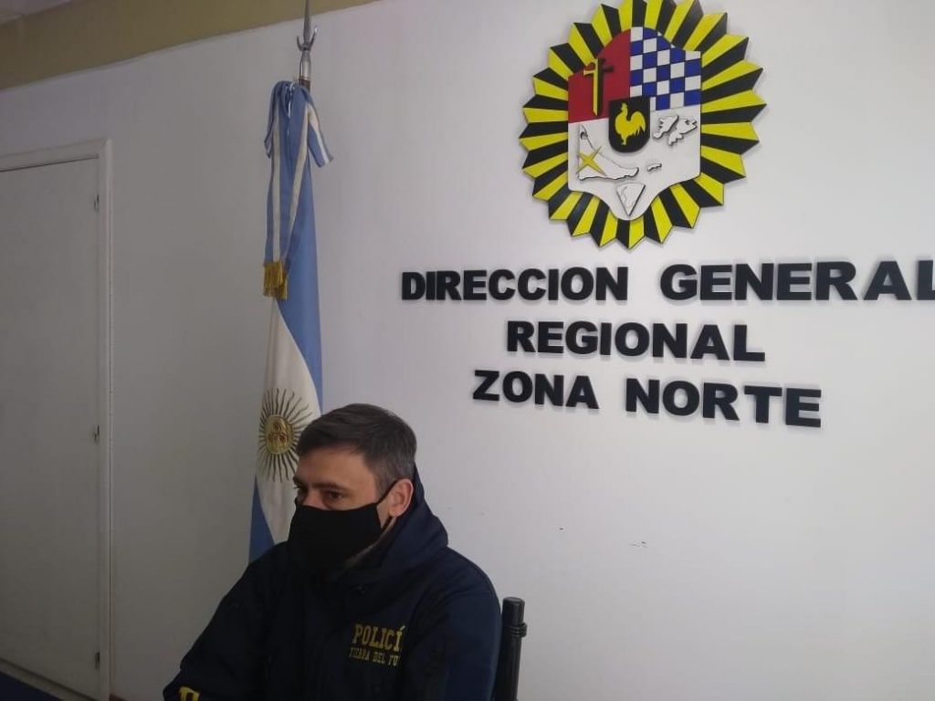 El comisario inspector Cristian Salinas, jefe del departamento Delitos Complejos de la Policía, brindó este sábado una conferencia de prensa donde brindó detalles del eficiente trabajo policial que sirvió para detener a dos personas -e imputar a dos mujeres- por este asalto a mano armada ocurrido el pasado jueves.