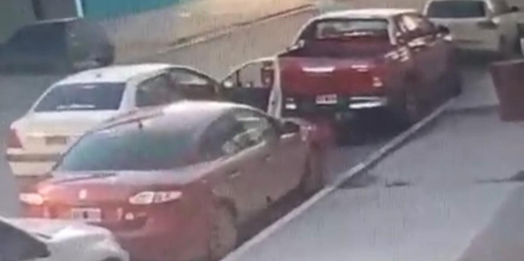 Tal y como se puede apreciar en las imágenes, dos sujetos detienen en doble fila un vehículo blanco, a centímetros de una camioneta Hilux, y tras simular por espacio de algunos segundos comienzan a hacer maniobras para robar la rueda de auxilio que hay debajo de este último rodado.